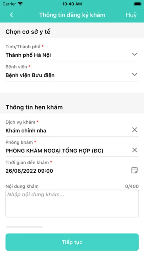 - Đăng ký lịch khám online: Cho phép chọn bệnh viện, loại dịch vụ khám, bác sĩ, hoặc theo ngày mong muốn. Quản lý lịch hẹn, đặt lịch tái khám.