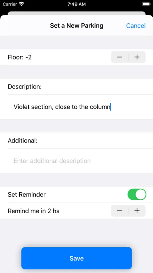 - Add Text reminder - Adding a detail description and/or optional additional information to help you find your vehicle