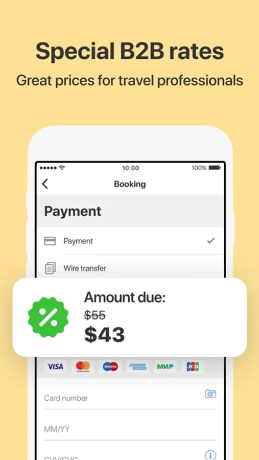 You can choose from over 1,800,000 hotels, guest houses, hostels, and apartments at great prices for corporate clients and travel agencies. We work with major global inventory suppliers and tens of thousands of hotels directly. This allows us to provide you with the best rates and save your money.