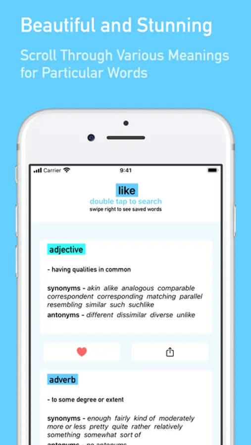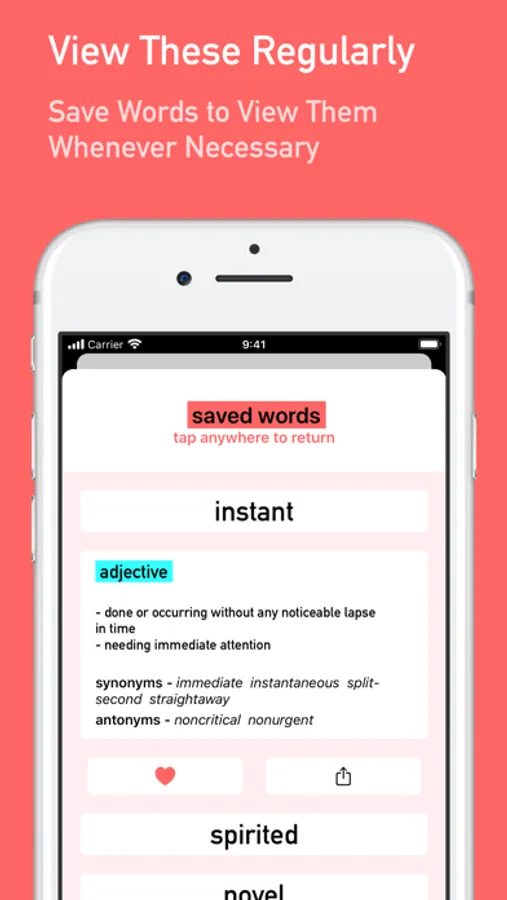 Small haptics are included when pressing various buttons, improving the overall experience; 3D Touch is available to help users launch the app, and users can easily share new found words with friends and family.