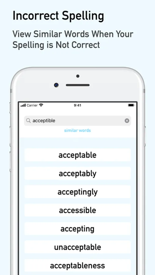 - The app suggests relevant similar words, to help users who were unable to find the word they were searching for
