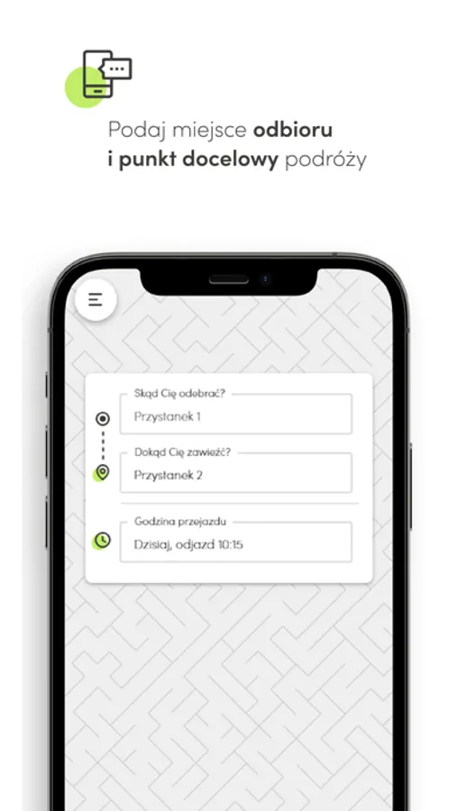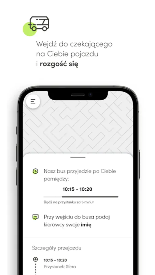 Select the stop, time of arrival, and send your order - the driver will pick you up from the indicated place and bring you to your destination on time. Our service will significantly increase your comfort of traveling and using public transport.