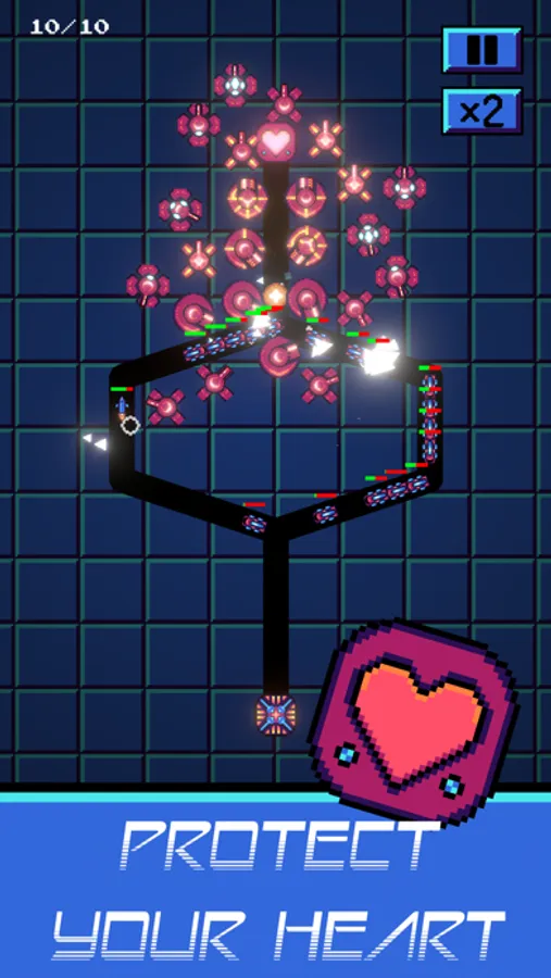 Build towers, protect your heart, overclock to be OP and enjoy the synth — in this 80s pixel synthwave inspired tower defense game.
