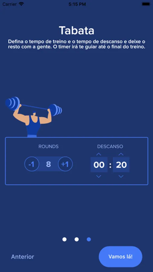 Defina o tempo de treino e o tempo de descanso e deixe o resto com a gente. O timer irá te guiar até o final do treino.
