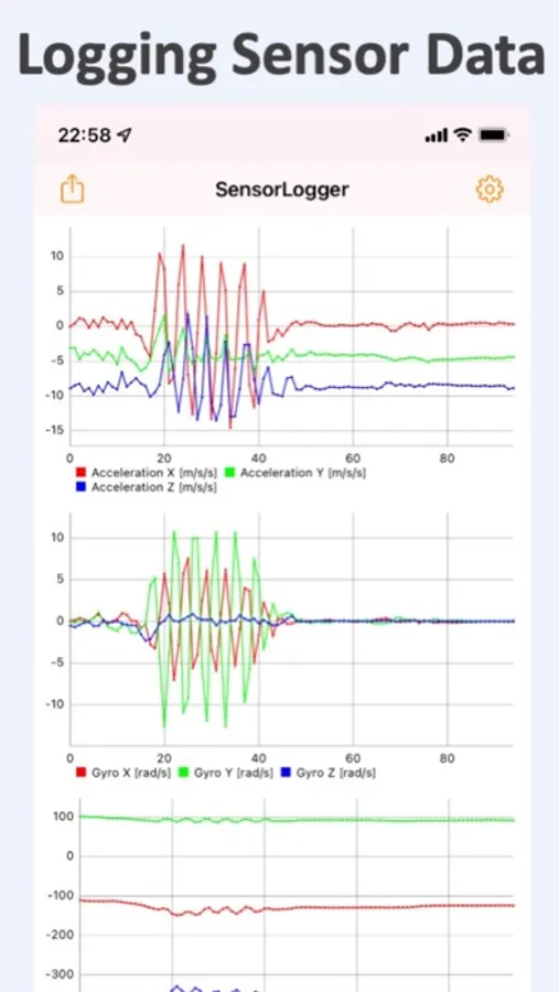 A logger App that can measure acceleration, gyroscope, and magnetic field synchronously, then export as a CSV file.