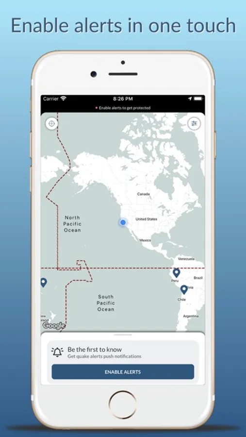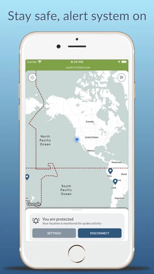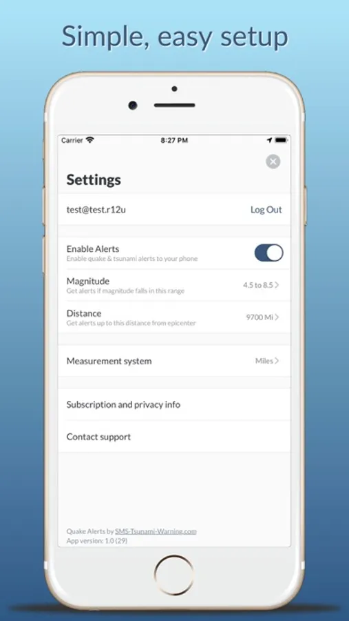 The user interface is simple and easy to use. For a better reading, the map only shows "significant" earthquakes (with magnitude equal to or bigger than 4.5 on the Richter scale) detected globally in the last 24 hours. In the Settings screen, you can set your parameters for receiving the alerts (ie. user’s distance from the quake’s epicenter and magnitude). After the parameters are set, you can enable (or disable) the alarm system in one touch for total peace of mind. The app supports both metric and imperial measurement systems (Kilometers / Miles) to assess distances.