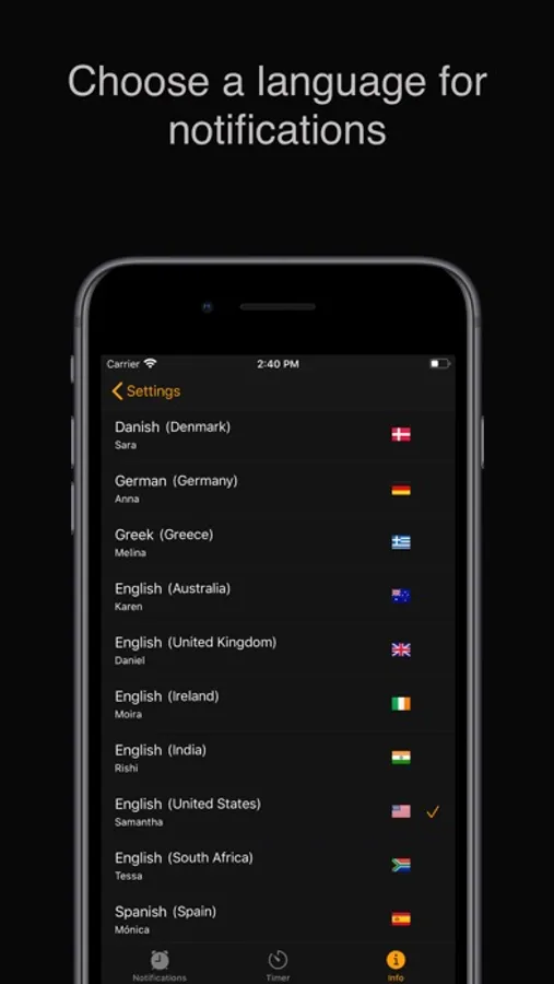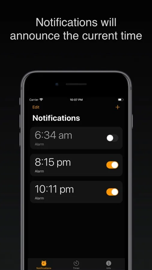 - create a timer - time notification with the specified interval (the minimum interval can be selected in increments of a minute)