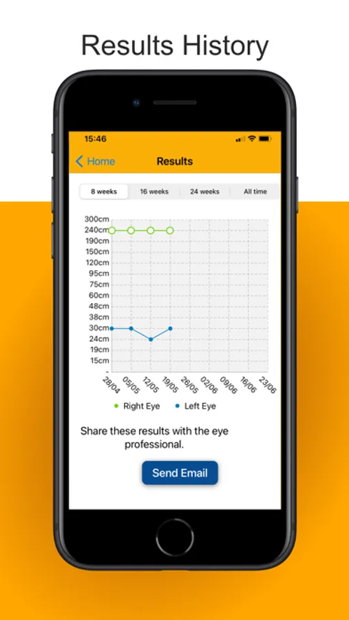 - Displays contact details for your child’s eye professional and an email link to them from the Test History Chart.