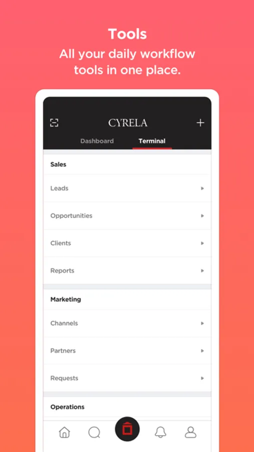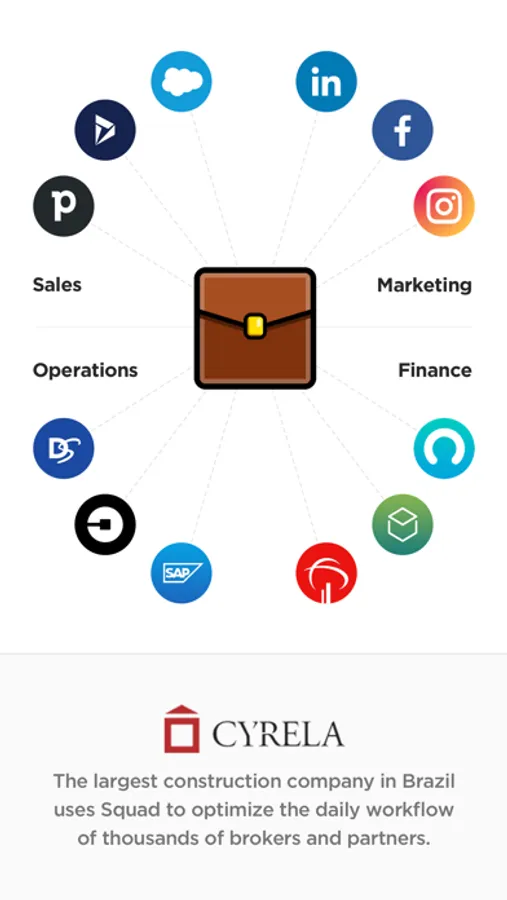 * Organize all important workflow tools in one place: Sales, Marketing, Operations, Support and much more.