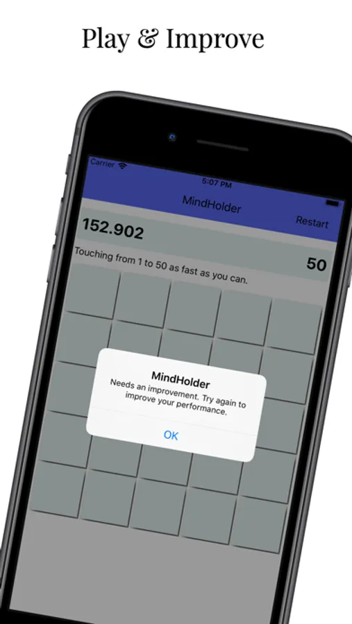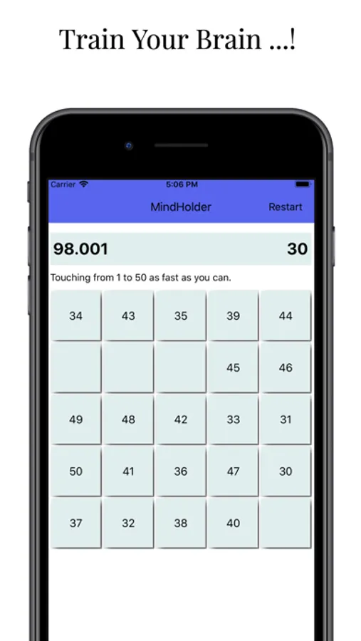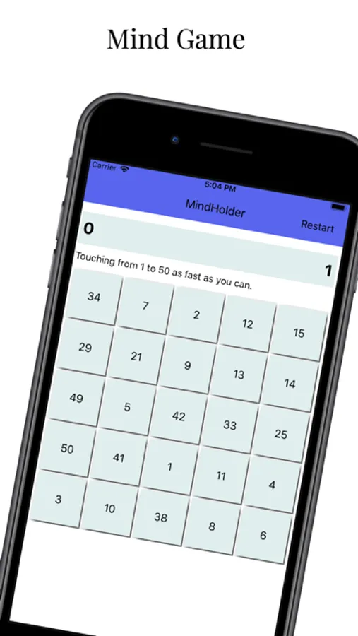 Are you getting bored? Then start playing MindHolder. It's a very simple game where you just have to remember the position of random numbers ranging from 1 to 50. And start touching that random numbers as fast as you can. This way you can improve your focus and your memory by remembering the position of nearest numbers.