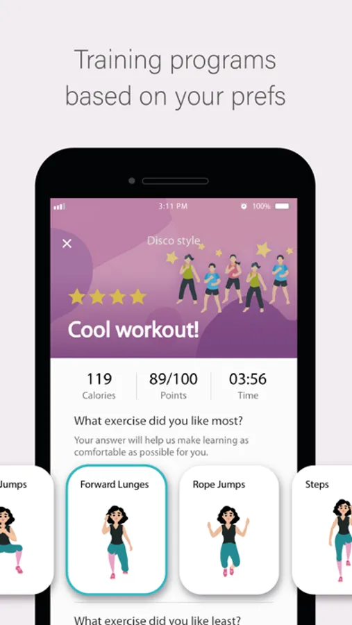 → Vivafit builds personal training plan based on user aim and training data, that has been received from all previous workouts.