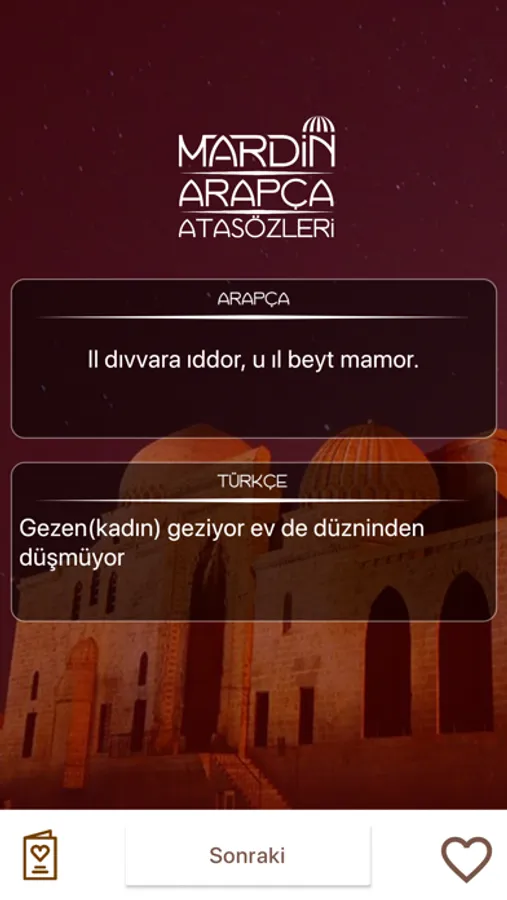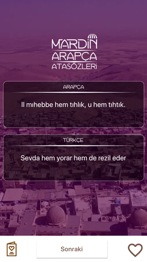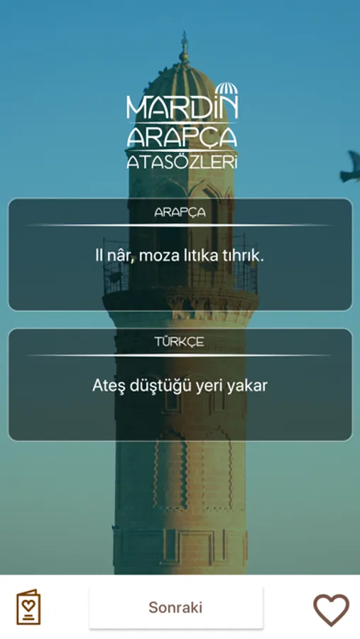 Mardin Arapça Atasözleri uygulamasıyla hazırlanan kartlar üzerinden Arapça atasözlerini Türkçe karşılığı ile öğrenebilirsiniz.