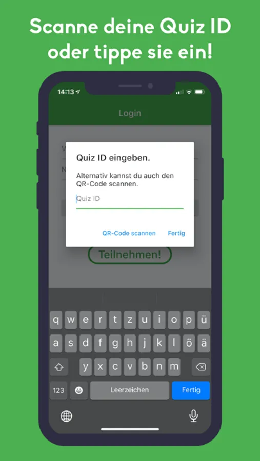 Scanne dazu einfach den QR-Code, den dir dein Lehrer gibt, oder tippe alternativ die Quiz ID ein.