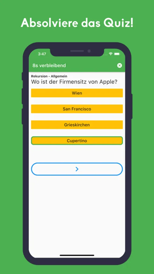 Anschließend kannst du dein Quiz starten und die Fragen absolvieren, danach kannst du die Fragen direkt über dein Handy abgeben.