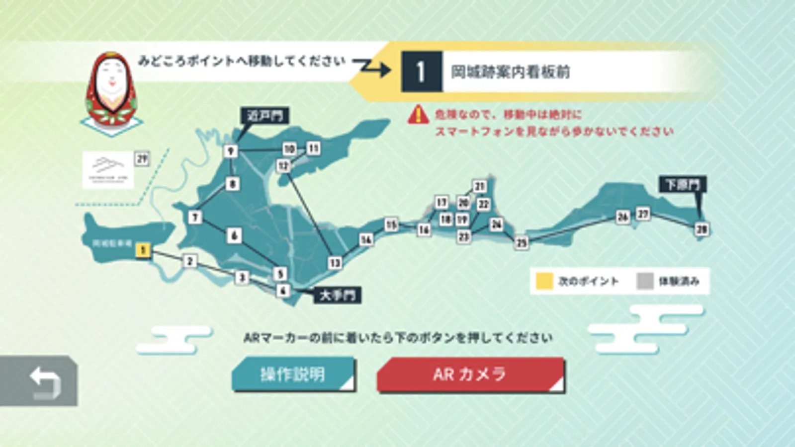また、岡城跡の随所に設置したARマーカーと連動し、岡城に来なければ得ることができない唯一無二の体験を提供します。