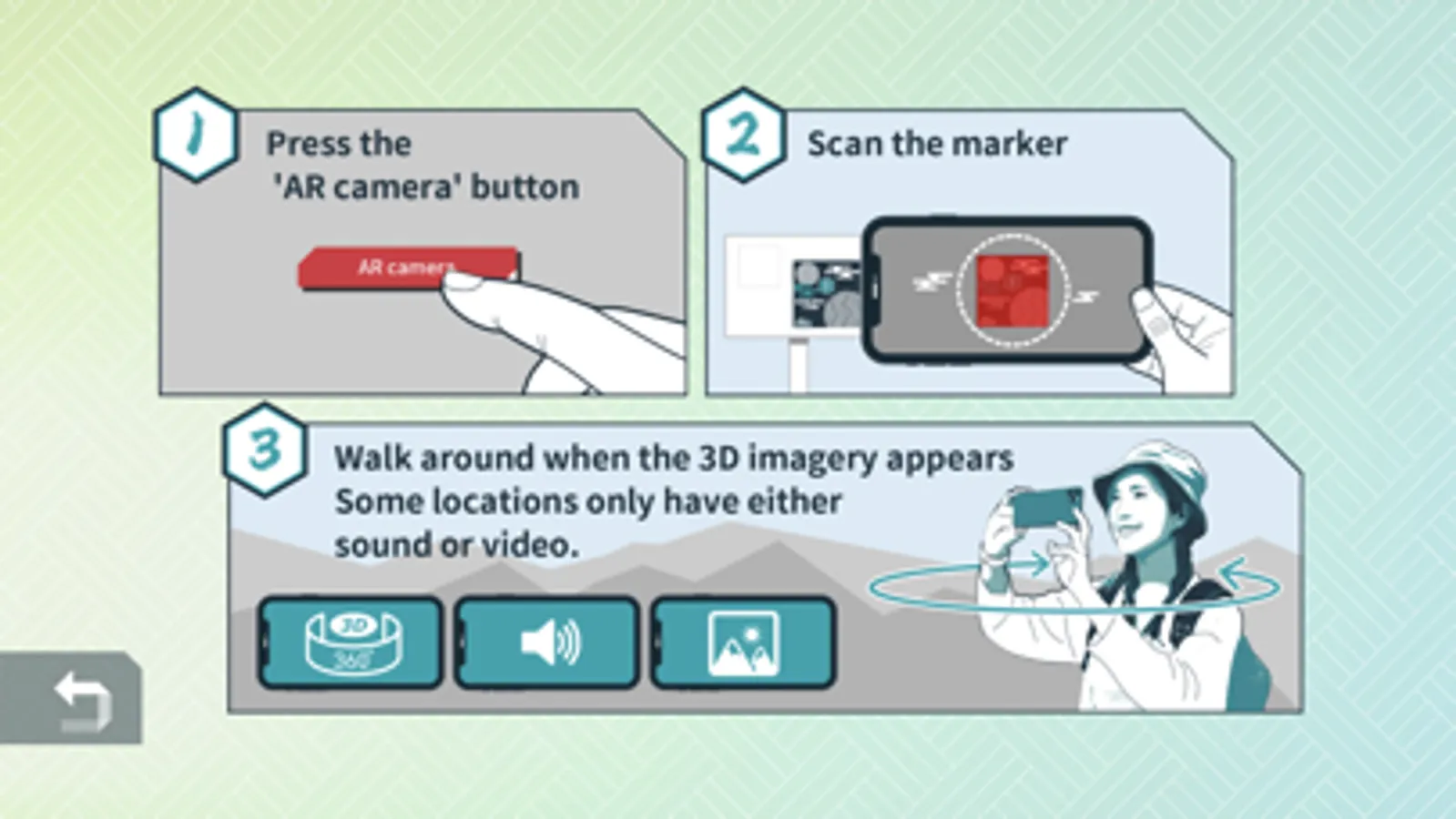 城内に設置したARマーカーを読み取ると、岡城についての様々な情報をナレーションと資料から知ることができます。