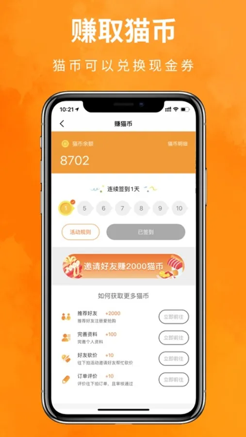 每天分享,赚取猫币,猫币可以兑换现金券,让你吃出美味,吃出优惠,吃出乐趣。