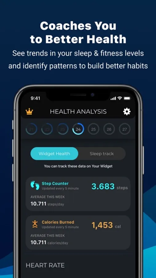 Our historical analysis enables you to see trends in your sleep and helps you identify patterns that prevent restful nights. Trouble falling asleep? Use soothing sleep sounds to rest your mind and drift into dreams easier. For the best results and accuracy, Health Widget integrates with the Apple Health app.