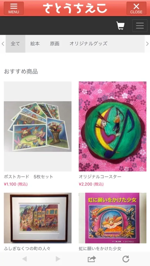 著者の絵本や原画、オリジナルグッズを販売しています。