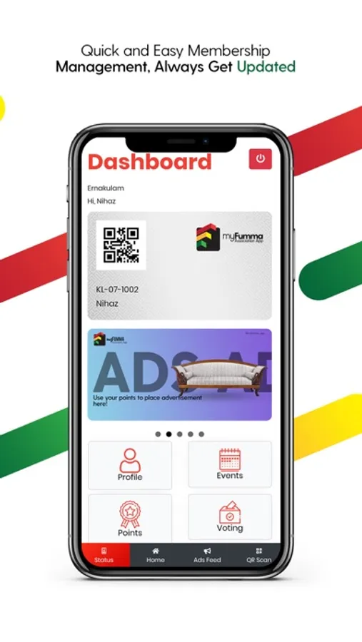 Fumma Association Application Software is a user-friendly App for the furniture association in Kerala to service their members for overall activities happening in the industry. The app helps the member to connect with the association for the meetings, events and also get the reports of the same. The app also provides a voting feature to elect the representatives of the association. The member can publish and view advertisements based on criteria. There is a privilege card point-based system for the member who has attended the meetings and events.
