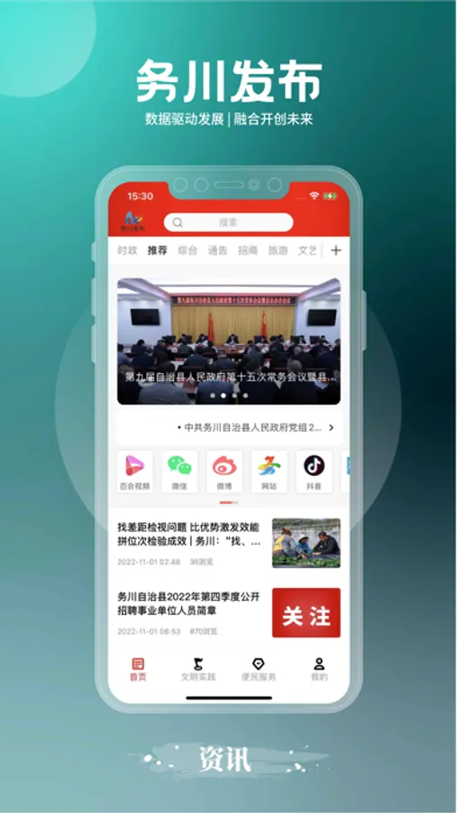 务川发布APP是务川自治县融媒体中心的官方新闻客户端,以聚焦务川新闻、传播仡佬文化为己任,致力于打造具有民族特色的影音图文矩阵化传播生态系统,为用户提供准确优质高效的区域综合资讯。