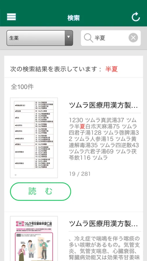 ツムラ医療用漢方製剤検索機能>>「効能効果検索」と「生薬検索」でそれぞれ処方を検索できます。