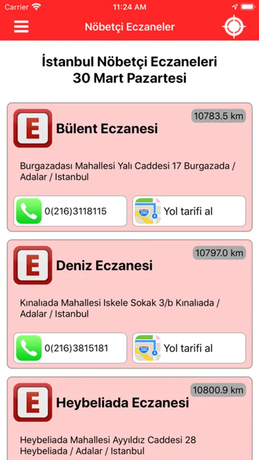 Ulaşmak istediğiniz eczaneye tek bir dokunuşla rota çizebilir veya arayabilirsiniz. Bununla beraber bazı eczaneler, gece boyu nöbet tutmuyor olabilir; bazıları ise icap nöbeti tutuyor veya mücbir bir sebeple nöbet başında bulunamıyor olabilir. Bu nedenle eczaneye gitmeden önce telefonla açık olduğunu teyit etmeniz tavsiye olunur.
