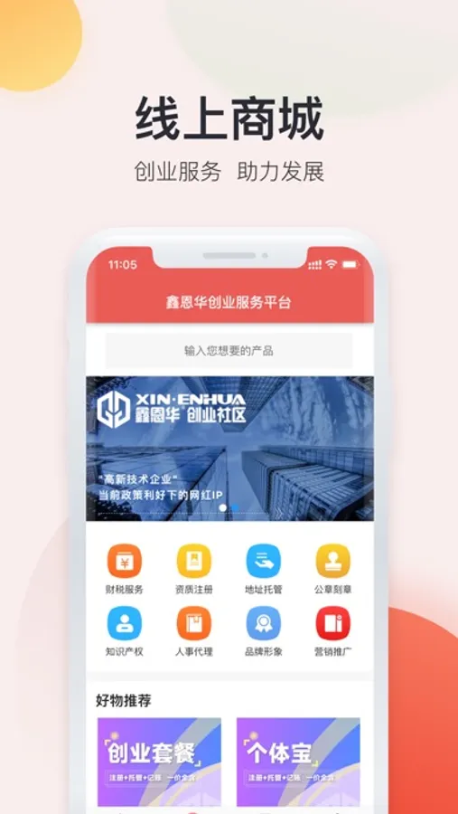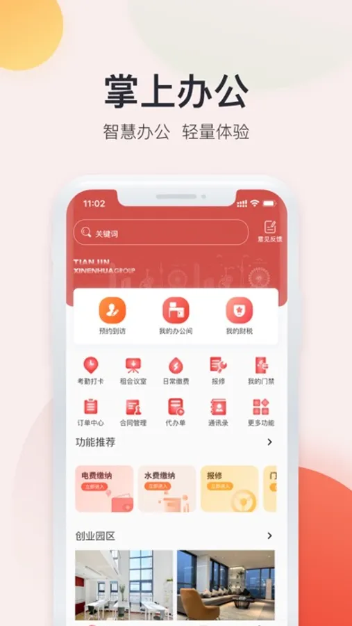《鑫恩华创业服务平台》是一款为企业提供办公场地、考勤打卡、商城服务的综合性平台。