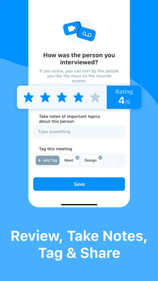 Start a one-link video call from anywhere, anytime. Easily transcribe them into the text if you need. With this app, you can organize all of your video calls in a few taps! No matter how many video meetings you've made, with the help of Interview Recorder, you will be able to organize, rewatch and remember every detail.