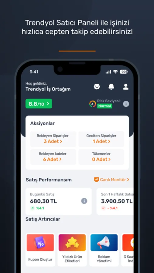 Trendyol satıcı panelini artık cep telefonunuzdan kolayca kullanabilirsiniz.