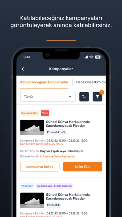 Satıcı paneli mobil uygulamasında ürünlerinizi listeleyebilir, satış performansınızı ve siparişlerinizi takip edebilir, duyurularınızı görüntüleyebilirsiniz.