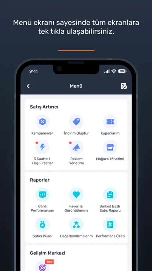 - Satış performansınızı, en çok satan ürünlerinizi ve günlük satışlarınızı her an her yerden takip edebilirsiniz.