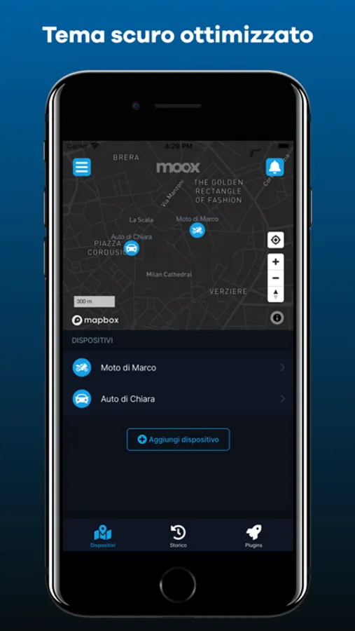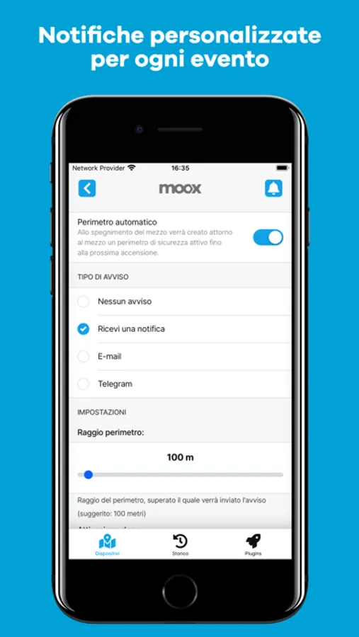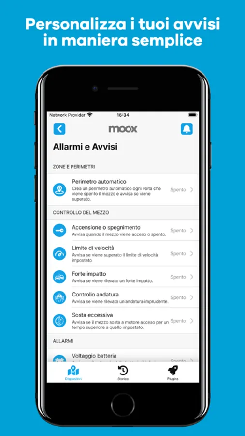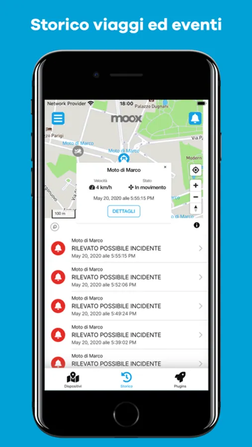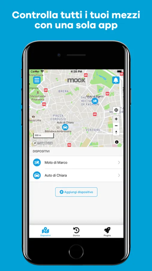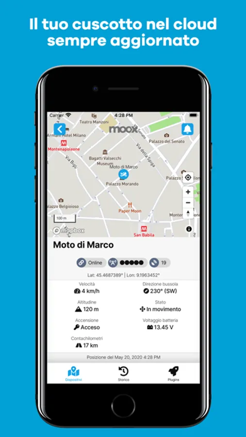 Per funzionare quest'app necessita di un account MOOX attivo e un localizzatore satellitare MOOX correttamente installato.