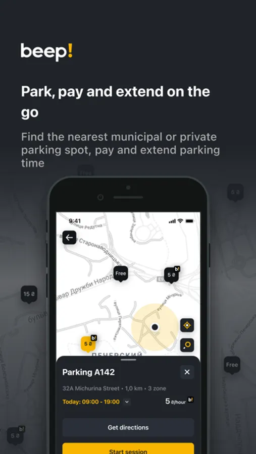 Search for municipal or private car parks within a given radius, pay for parking online, obtain information about the cost and additional services, and use the map to navigate a route to your chosen car park.