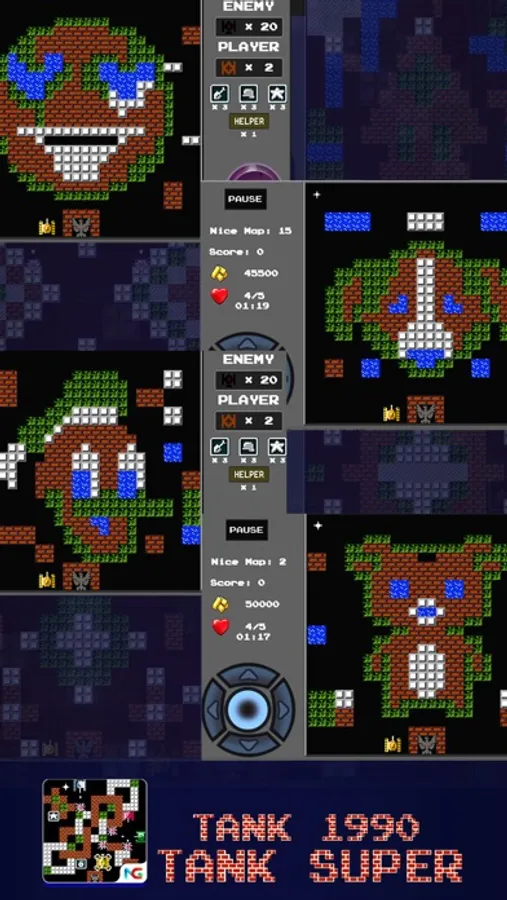 - Tank game: a symbol that gives an extra life. Player also earns one extra life by reaching 20000 points.