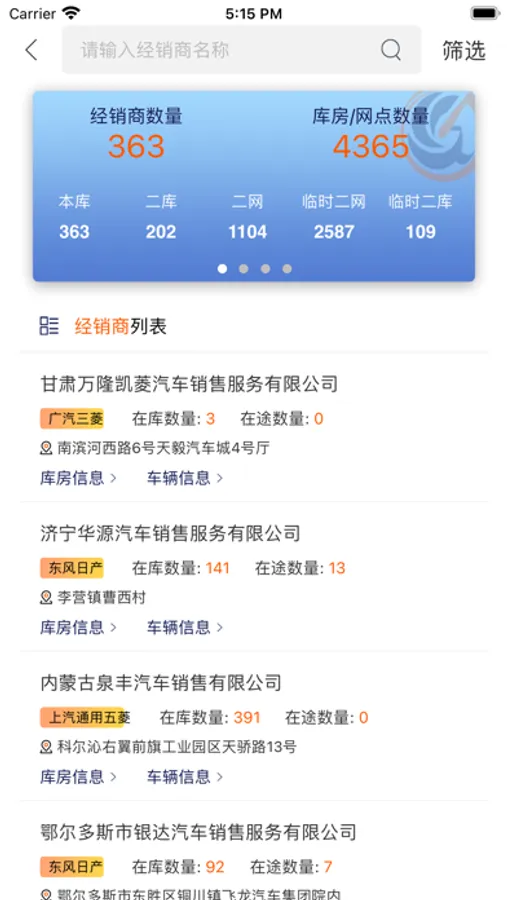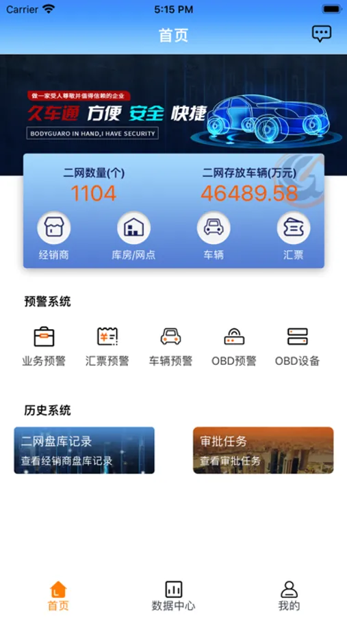 通过APP可以查询经销商信息、库房信息、车辆信息、汇票信息,还可以查看业务预警信息、车辆预警信息和汇票预警信息,为用户提供便捷办公。