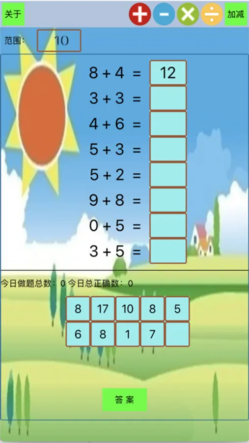 2.通过设置“范围”,上下滑动可以调整题目难度。