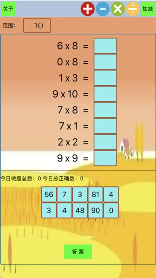 5.乘法范围包括:10以内乘法,20以内乘法,30以内乘法,50以内乘法,100以内乘法。