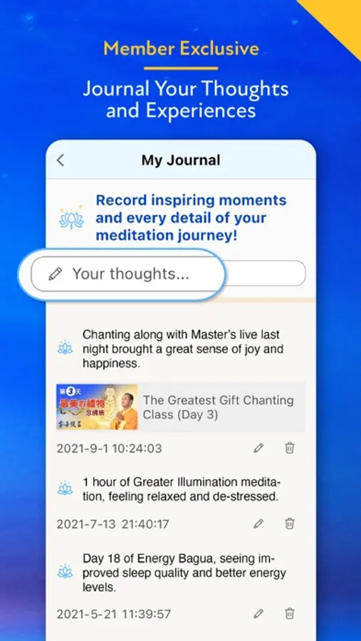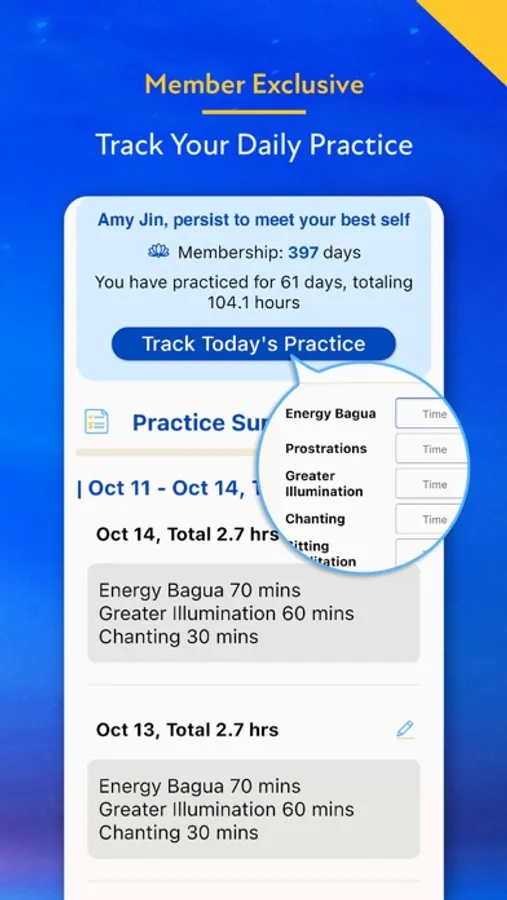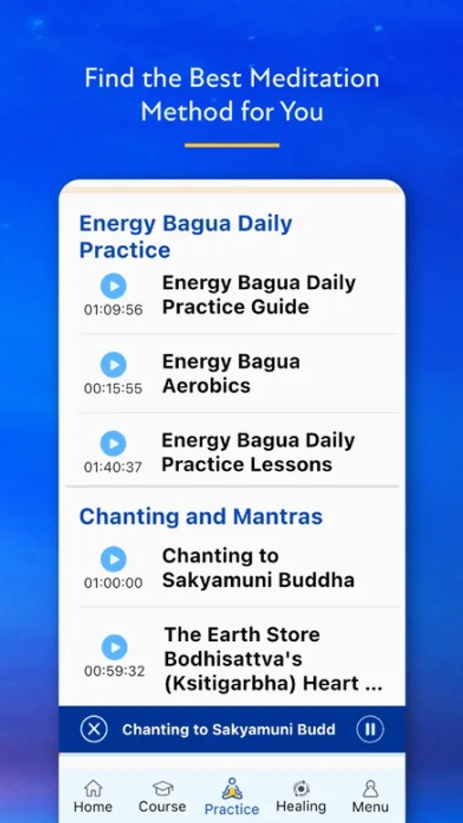 The APP includes 3 sections: Classroom, Practice and Energy Blessings