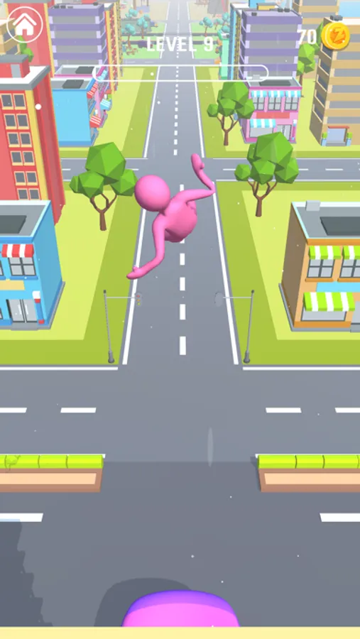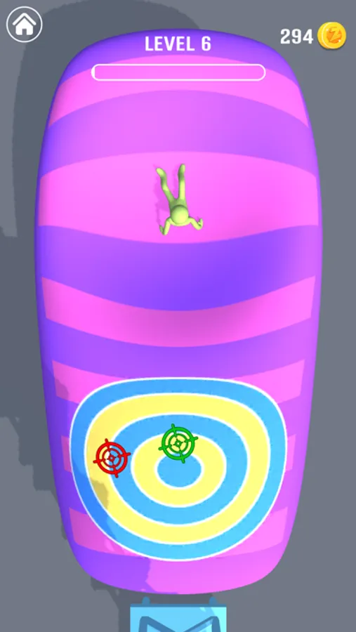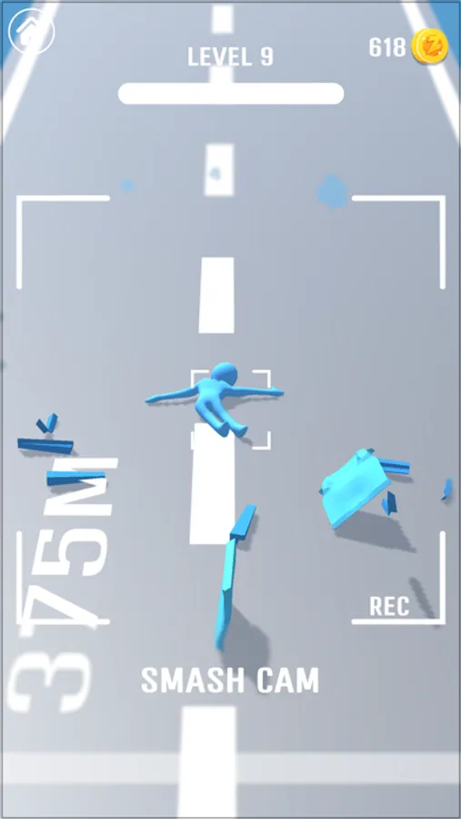 Win levels by throwing him such that he destroys the objects at the end of each level.