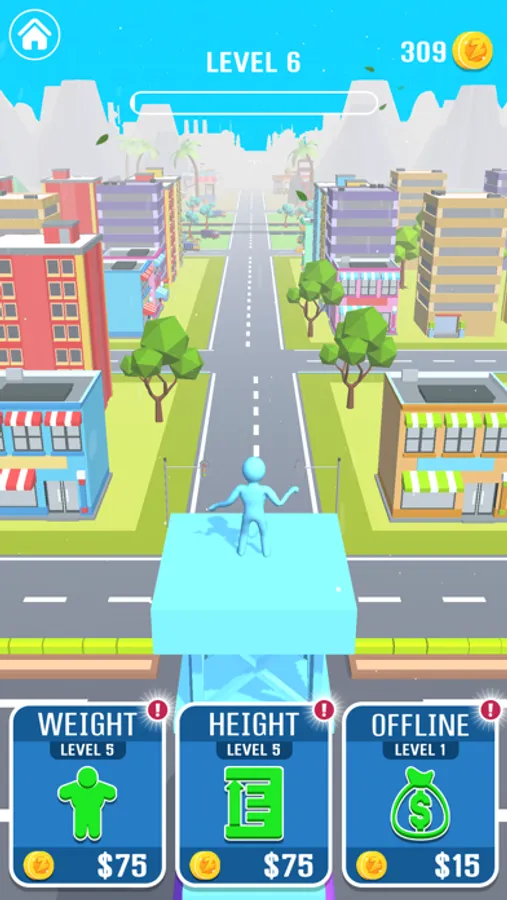 Upgrade your weight and height and offline earnings to progress farther in the game.