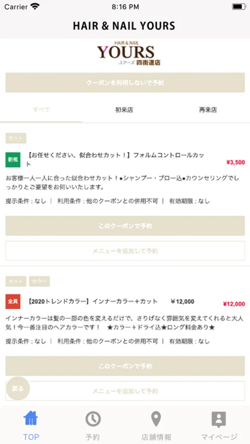 HAIR & NAIL YOURS(ユアーズ)の公式アプリです。