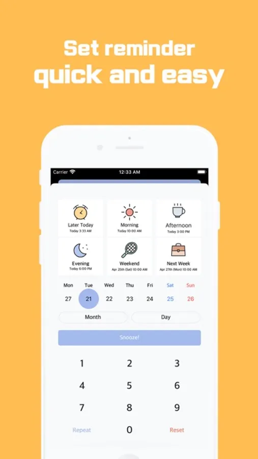 You can snooze tasks super easy and quick with calculator like user interface.