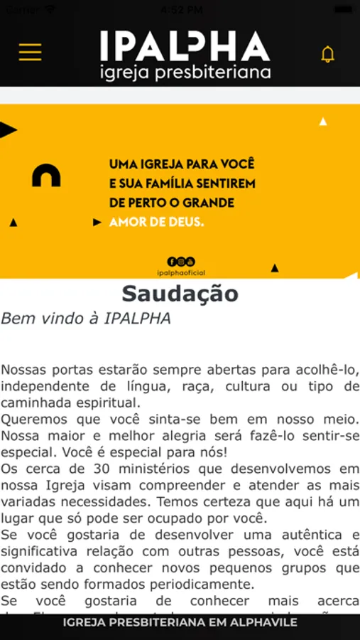 O APP permite o relacionamento entre a Igreja Presbiteriana em Alphaville e seus membros ou visitantes.