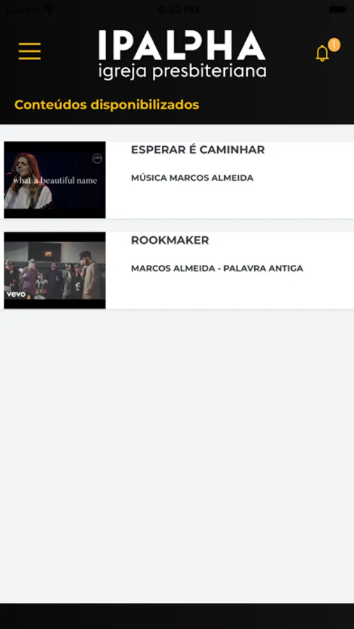* "Conteúdos (Áudio/Vídeo): Permite visualizar e ouvir conteúdos da Igreja disponíveis no App;