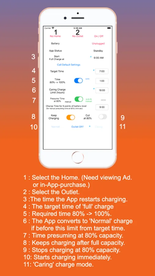 The App can't work on background due to restriction of iOS. So this App can't control charging completely, but execute as ideal as possible.