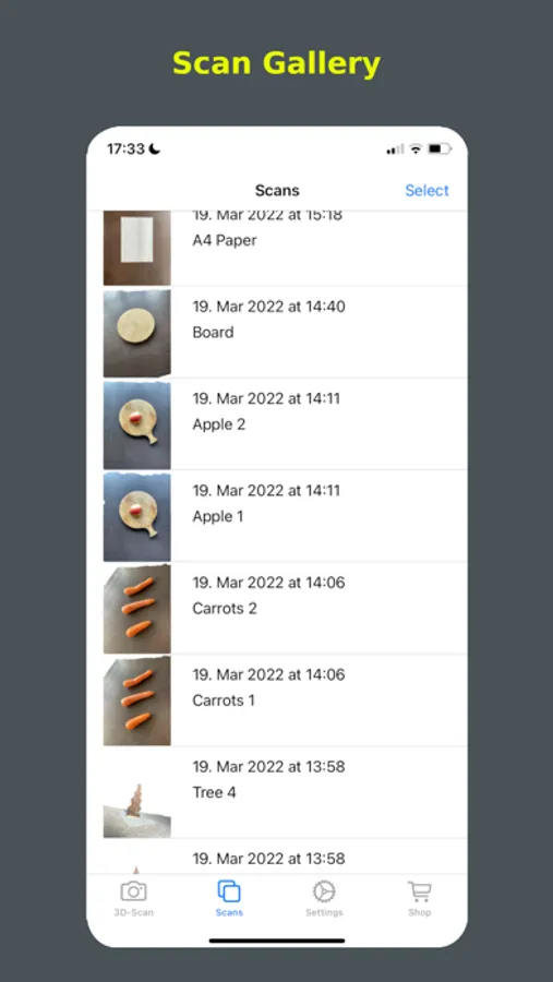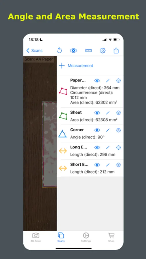 In addition to saving, viewing and exporting the 3D scans, another key feature is the ability to take comprehensive and varied measurements of the 3D scans. Due to the factory calibration of the TrueDepth camera used on the iPhone or iPad, the scale of the 3D scans is known, so that the real dimensions of the scanned objects can be determined directly in the 3D Scanner app.