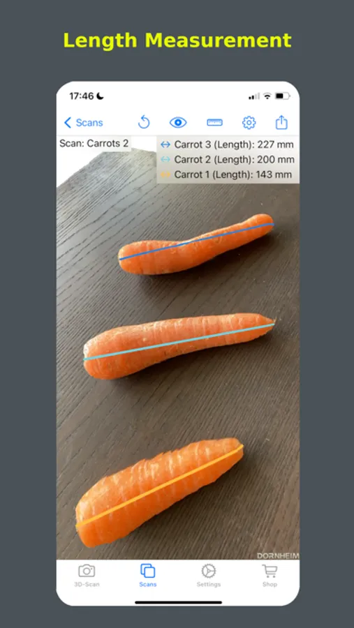 Dornheim 3D Scanner with export and measurement function turns your iPhone or iPad into an easy-to-use 3D scanner with a wide range of export options and comprehensive scale measurement functions, from length and angle measurement to area and volume measurement.