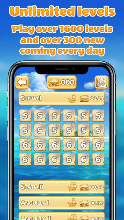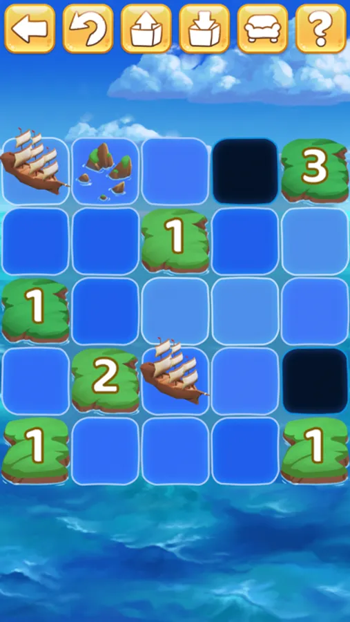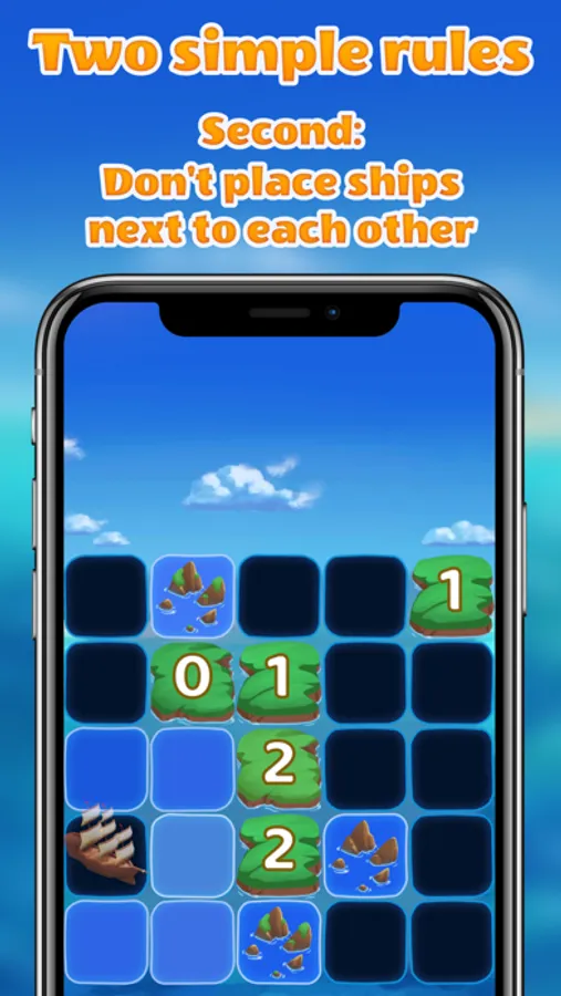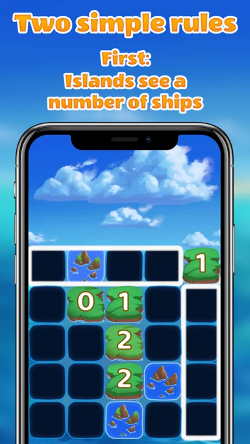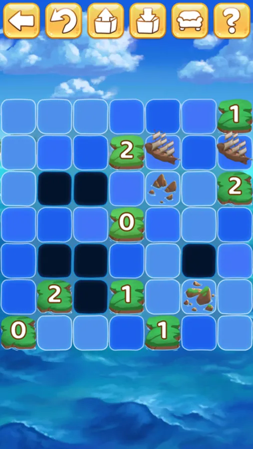 Your job is to match the number that's on the islands with ships in a straight line. Suppose, an island has number "2" written on it. You must place two ships that can be seen from that island. You can place ships in all directions as long as they can be seen from the island. Make sure though, that it doesn't overlap an island that has "0" written on it. Also, do not place ships next to each other. When you perfectly place ships for each island, you will win the level and promoted to the next one that awaits you with new challenges and excitement.