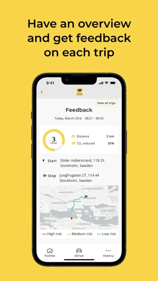 The AA Driving School Fleet and Business Telematics app is powered by Enerfy. This app will unlock the potential to improve your driving as part of your company’s safe driving policy. You’ll be able to track how well you’re driving after each trip, see your position on the leader board and get animated feedback on your journeys to help you keep improving your driving style every step of the way. The AA Driving School will also be on hand, helping you, and your employer on the path to safer journeys on the road.